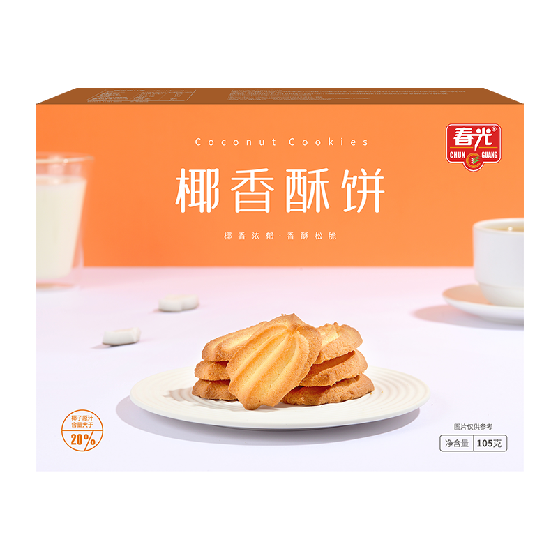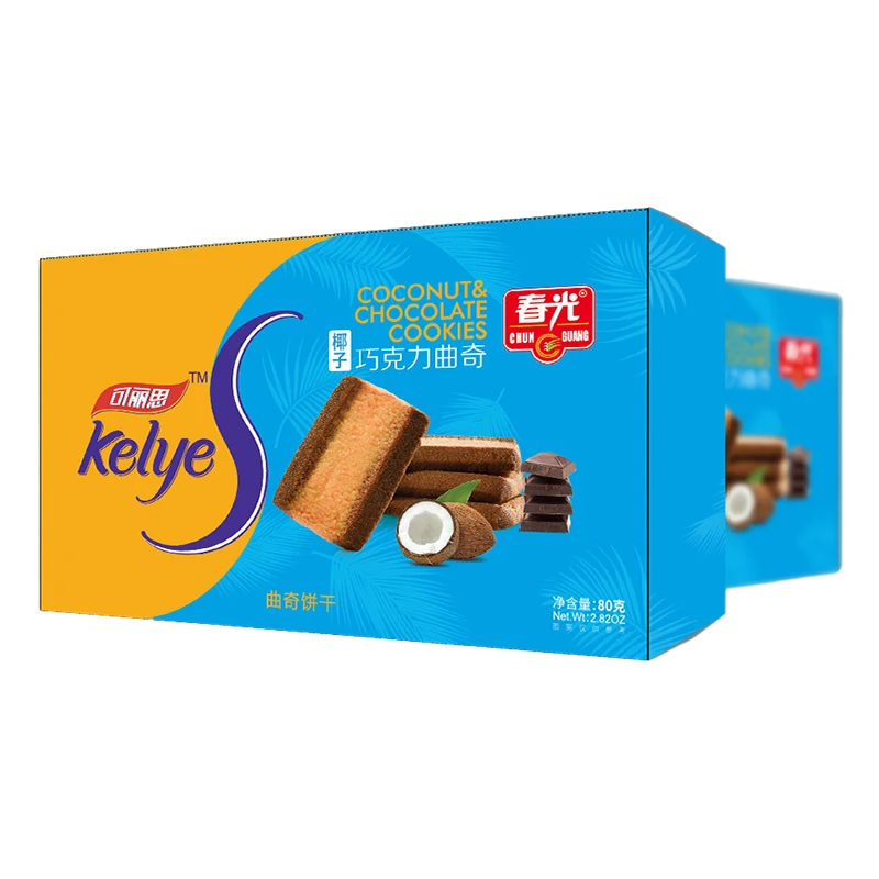 小麥粉、白砂糖、食用油脂制品、椰子原汁、雞蛋、椰蓉、淀粉、黃油、全脂乳粉、可可粉、碳酸氫鈉、食用香精、碳酸氫銨、復配膨松劑(碳酸氫鈉、焦磷酸二氫二鈉、葡萄糖酸-δ-內(nèi)酯、磷酸二氫鈣、檸檬酸、磷酸三鈣、玉米淀粉)。