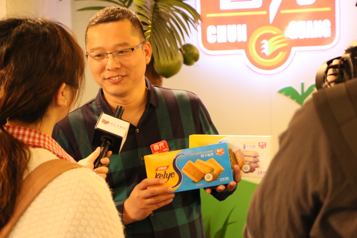 春光食品新品可麗思系列餅干一經(jīng)亮相便成為炙手可熱的“明星”,受到全國(guó)多方客商的關(guān)注。在近萬種新產(chǎn)品相繼亮相之際,可麗思系列餅干脫穎而出吸引了眾多食品行業(yè)以及成都當(dāng)?shù)孛襟w的采訪報(bào)道。“感覺每一滴椰香和奶香都糅合在面粉的麥香里,酥脆可口很上癮”,很多人表示吃了還想吃?!按汗獾倪@款曲奇餅干不遜色于皇冠丹麥曲奇,我相信年輕人一定會(huì)喜歡?!眮碜哉憬慕?jīng)銷商對(duì)這款新品給予足夠的信心。春光食品展區(qū)上人潮擁擠,品鑒不斷,憑借其首款椰子味曲奇餅干的亮點(diǎn)成為本屆糖酒會(huì)的爆品,在糖酒會(huì)上掀起一輪熱潮。